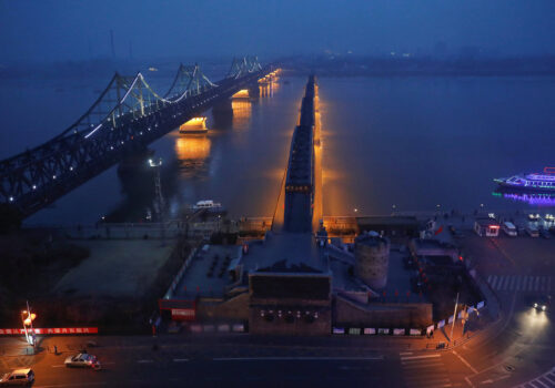 A breathtaking night view of a historic bridge, illuminated beautifully over the river, reflecting its rich history and charm.